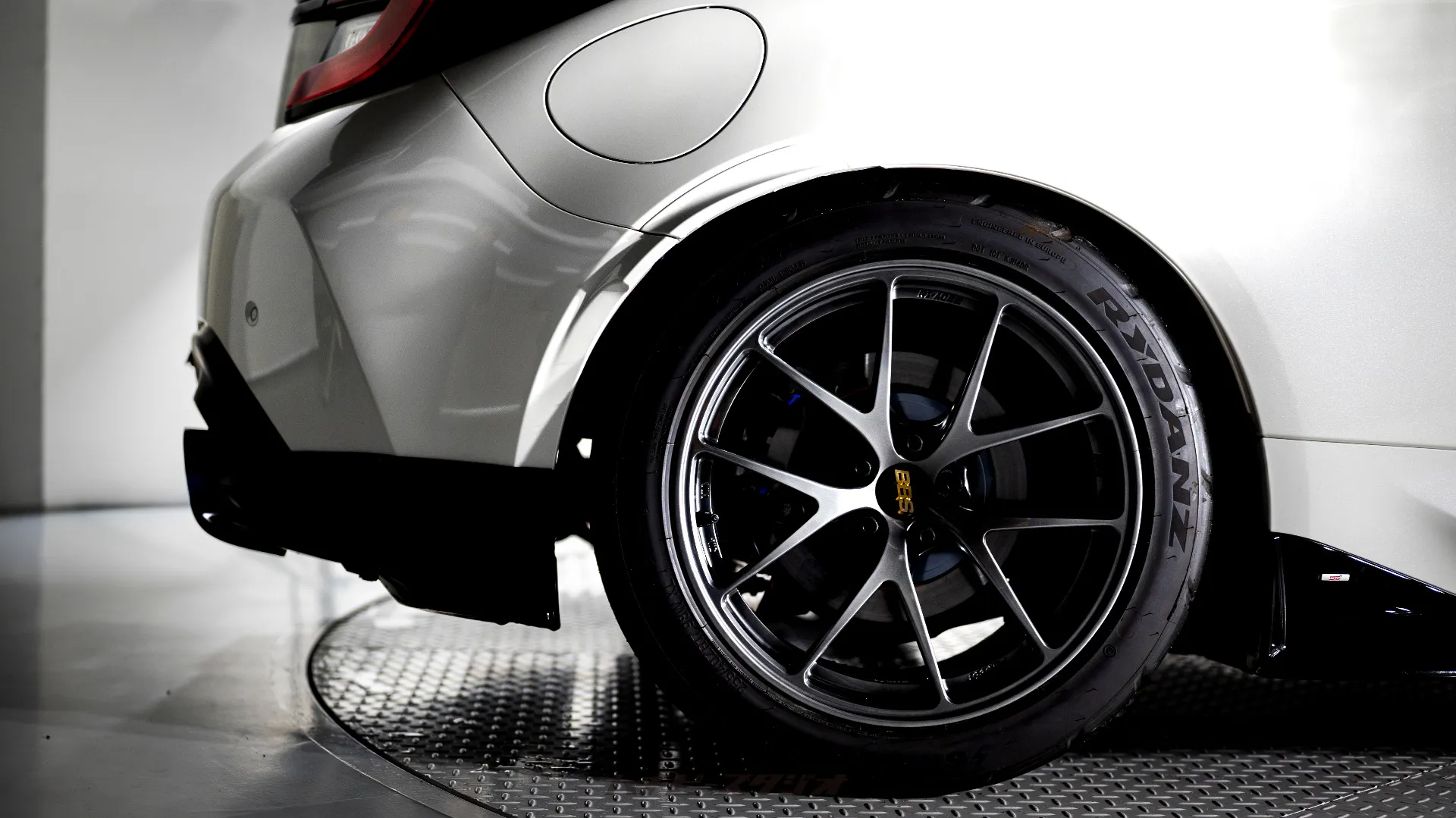 スーパーGTのSUBARUチームBRZと同じBBSを選んだやまとさん。RI-Aは「国内最高峰のレース「SUPER GT」の実戦で投入されているホイールと、同一の思想で、同一の造形でつくられた究極のレース仕様。」というコンセプトで作られたスーパーGTのレプリカと言ってもいいホイール。F1でもBBSが指定ホイールとなっており、やまとさんらしいチョイスですね。